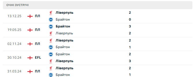 ЛІВЕРПУЛЬ — БРАЙТОН