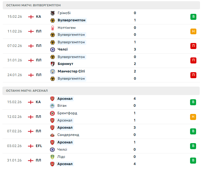 Лондонці стабільно грають проти аутсайдерів: 14 поспіль перемог над командами із зони вильоту із загальним рахунком 40:4. До того ж Арсенал виграв дев’ять із одинадцяти виїздів до Вулвергемптона в АПЛ та забивав у кожній із 36 останніх очних зустрічей. Навіть кадрові втрати не виглядають критичними — частина лідерів отримала відпочинок у кубку. З іншого боку, є й інша невтішна статистика: "каноніри" тричі втрачали очки в останніх п'яти турах Прем'єр-ліги, включно з поразкою від Манчестер Юнайтед, тому питання щодо стабільності головних претендентів на титул все ж залишаються.