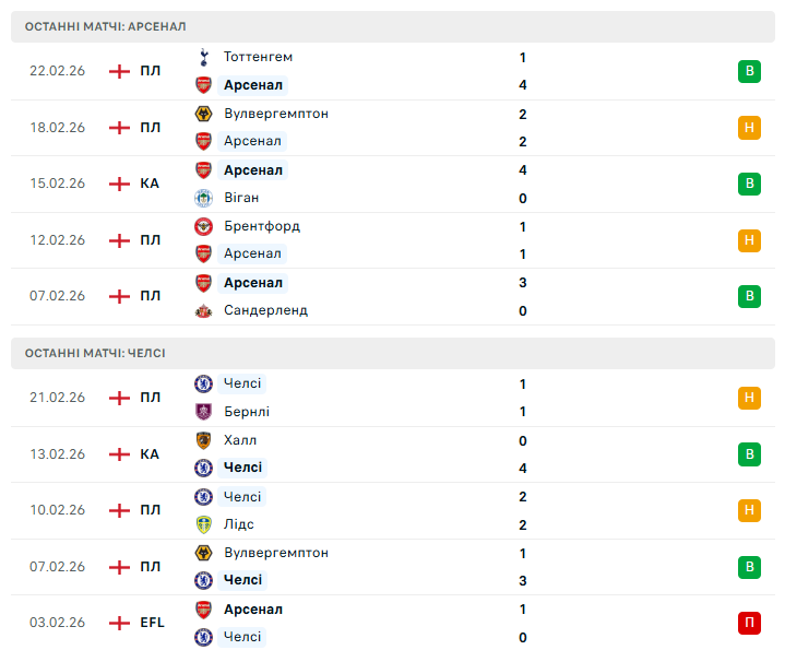 У центральному матчі 28-го туру Прем’єр-ліги глядачів чекає гаряче лондонське дербі: Арсенал прийматиме Челсі на Емірейтс Стедіум. Для господарів це шанс зміцнити позиції у чемпіонських перегонах, для гостей — можливість оживити боротьбу за топ-4. Турнірна мотивація обох — на максимумі.