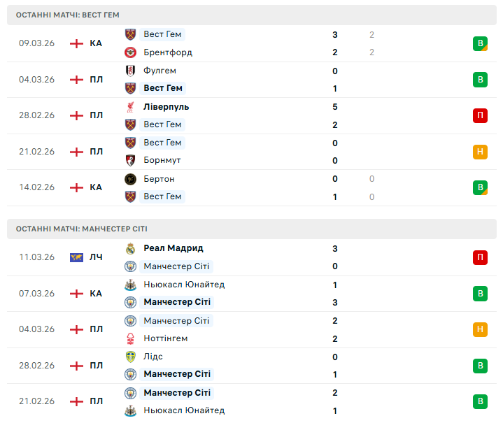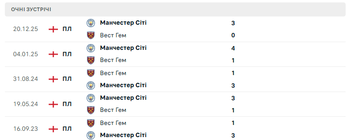 У внутрішньому чемпіонаті ситуація також напружена. Після нічиєї з Ноттінгем Форест команда відстала від лідера Арсеналу на сім очок, тому права на нову осічку практично немає. Водночас статистика очних матчів проти Вест Гема на боці "містян" — вони не програють цьому супернику у Прем’єр-лізі вже 20 матчів поспіль, вигравши 17 із них. До того ж Ерлінг Голанд традиційно небезпечний у таких іграх — норвежець забив "молотобійцям" уже 11 голів у чемпіонаті.