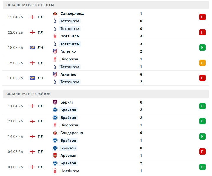 З наближенням завершення сезону англійської Прем’єр-ліги Тоттенгем та Брайтон підходять до очного протистояння з абсолютно різними настроями. Для господарів це шанс врятувати кампанію та вибратися із небезпечної зони під керівництвом нового тренера, тоді як гості прагнуть закріпити свій прорив і продовжити боротьбу за єврокубкові місця.