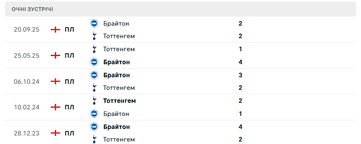 Особливо вражає виїзна форма Брайтона: три поспіль перемоги на чужому полі без пропущених м’ячів. Колектив Гюрцелера вже впритул підібралася до зони єврокубків і має всі шанси встановити клубний рекорд — чотири поспіль виїзні перемоги в АПЛ. До того ж Брайтон уже має психологічну перевагу над Тоттенгемом, не програючи йому в останніх трьох очних зустрічах.