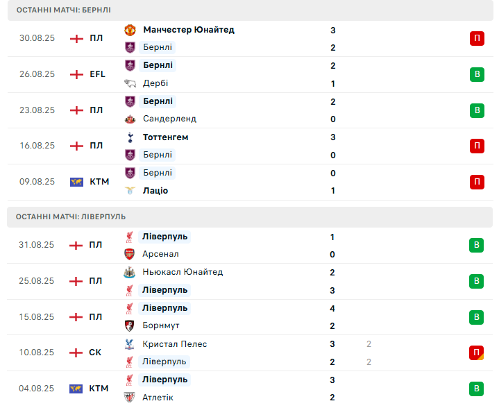 Після міжнародної паузи англійська Прем’єр-ліга повертається на Терф Мур, де новачок сезону Бернлі прийматиме чинного чемпіона — Ліверпуль. Підопічні Скотта Паркера прагнуть довести, що їхній вихід в еліту — не випадковість, тоді як команда Арне Слота націлена продовжити бездоганну серію стартових перемог.