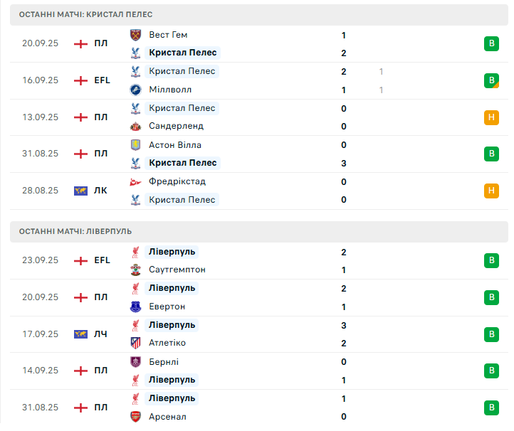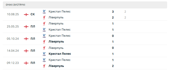 У п’ятому турі АПЛ зійдуться два останніх непереможених клуби сезону — володар Кубка Англії та Суперкубка Англії Крістал Пелес прийме чинного чемпіона Ліверпуль. Матч у Лондоні обіцяє стати одним із ключових ранніх протистоянь чемпіонату, адже обидві команди демонструють впевнені результати й мають амбіції продовжити свої безпрограшні серії.