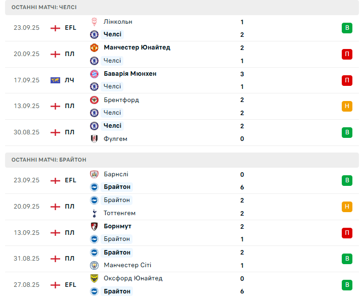 Вдома ж "сині" відчувають себе впевненіше. Вони не програють на Стемфорд Брідж у Прем’єр-лізі вже 12 матчів поспіль, і саме тут Мареска спробує повернути контроль. Особливий інтерес викликає гра Жуана Педру, який уже відзначився кількома результативними діями, та дуель Кайседо з колишнім клубом. Для вболівальників це ще й матч принципового характеру: у попередньому сезоні Брайтон двічі обіграв Челсі.