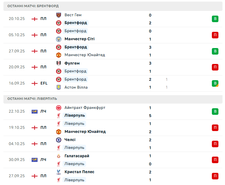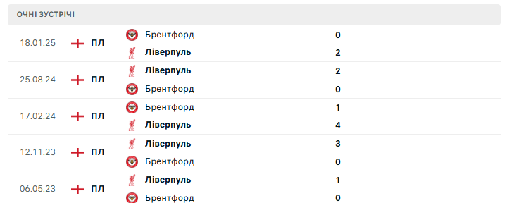 Утім, домашні результати Брентфорда залишаються нестабільними: лише три перемоги у 16 зустрічах 2025 року, проте дві з них — уже цього сезону, включно зі звитягою проти Манчестер Юнайтед (3:1). Тому на Комм’юніті Стедіум на господарів очікує гаряча підтримка. Тим більше, що Брентфорд прагне перервати неприємну серію з п’яти поразок поспіль від Ліверпуля, загальний рахунок яких — 1:12.