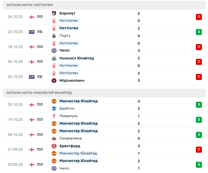 Фанати Фореста тримаються за статистику: їхня команда виграла три останні матчі проти Манчестер Юнайтед у Прем’єр-лізі, і на Сіті Граунд у господарів давно все складається успішно. Але Шон Дайч мусить знайти баланс, якого не було за каденції Анже Постекоглу. У нападі ймовірно вийде Ігор Жезус, який ще не відзначався у лізі, тоді як на флангах знову з’являться Гіббс-Вайт і Гадсон-Одої. Без реалізації моментів і різкості попереду Ноттінгему буде важко стримати суперника, який набрав хід.