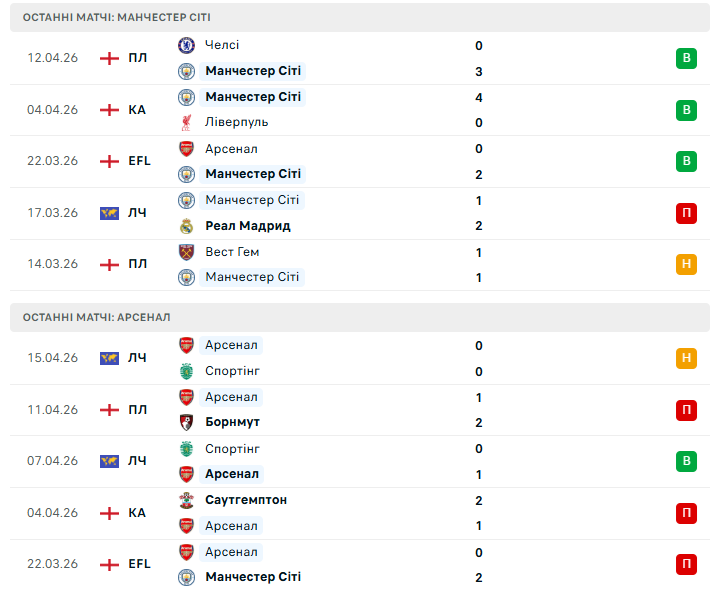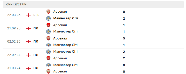 Втім, Арсенал усе ще очолює таблицю і має шанс зробити вирішальний крок саме на Етіхаді. Перемога може формально зняти всі питання щодо чемпіона, а навіть нічия залишить лондонців у дуже вигідній позиції. Для Артети та його команди це момент істини — той самий матч, який здатен визначити їхній статус у сучасній історії клубу. Можливість відплатити за кілька програних чемпіонських перегонів в АПЛ та нещодавню невдачу в фіналі Кубка ліги.