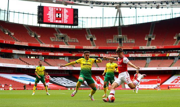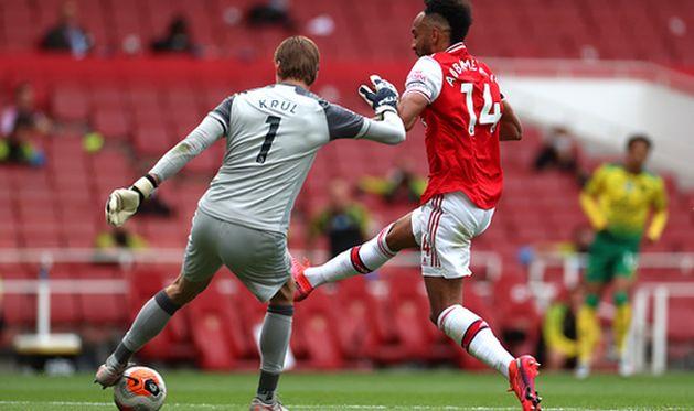 В рамках 32-го тура АПЛ лондонский Арсенал впервые после рестарта чемпионата играл на своем стадионе. Подопечные Микеля Артеты принимали Норвич, который очень близок к вылету в Чемпионшип. Испанский специалист удивил, оставив в запасе Николя Пепе и Букайо Сака, но и без этих исполнителей "канониры" оказывали давление на ворота соперника. Хозяева забрали мяч под свой контроль сразу же после стартового свистка, оккупировав чужую половину поля, однако не имели шансов забить быстрый гол.
