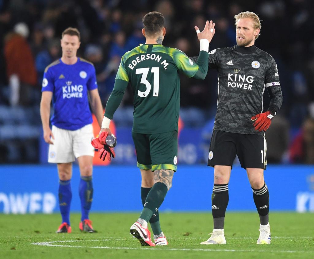 Шмайхель уверенно сыграл на выходе после фланговой подачи Б. Менди, спокойно забрав мяч в руки.