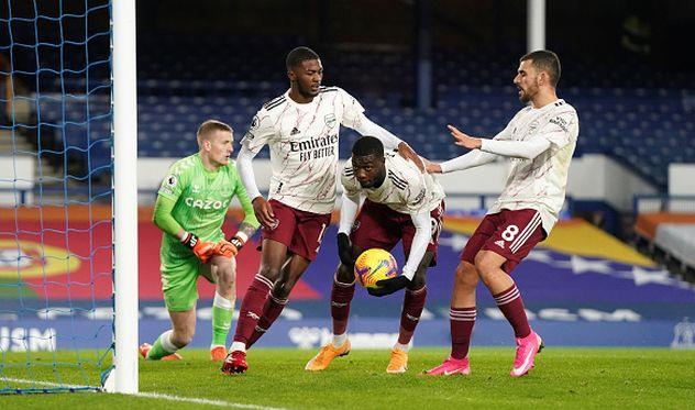 В середине первой половины встречи ливерпульцы неожиданно забили. Холдинг срезал мяч в свои ворота после подачи Ивоби на Калверт-Льюина – 1:0. Поведя в счете, хозяева отдали мяч во владение "канонирам". Те, в свою очередь, могли восстановить паритет уже через несколько минут усилиями Нкетиа, но Эдди не попал по воротам из убойной позиции. Далее подопечные Микеля Артеты много владели мячом, но практически не подбирались к чужой штрафной. Они перекатывали мяч преимущественно в центре поля без продвижения к воротам Пикфорда. Тем не менее, гостям удалось сравнять счет благодаря заработанному пенальти. Дэвис сбил Мэйтленд-Найлза в штрафной площади, после чего Пепе уверенно реализовал одиннадцатиметровый удар – 1:1.
