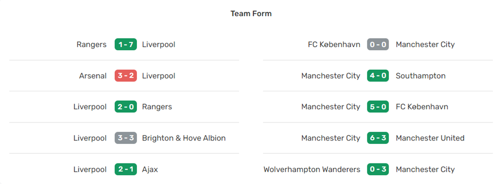 Але дивлячись на те, як Ерлінг Голанд забиває фактично в кожному матчі, Кевін Де Брюйне та Бернарду Сілва систематично постачають йому передачі, а Філ Фоден допомагає в реалізації моментів — прогнози для Ліверпуля, який має кадрові проблеми у захисті та в цілому проблеми з позиційною обороною, не дуже обнадійливі. Команда Клоппа може забити умовному Рейнджерс хоч десять м'ячів, але головним її завданням у майбутньому матчі буде пропустити якнайменше, оскільки навіть два забиті м'ячі у ворота Сіті нічого не зможуть гарантувати на 100%.