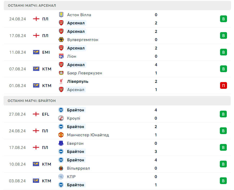 У рамках третього туру англійської Прем'єр-ліги-2024/25 лондонський Арсенал прийматиме на власному полі Брайтон.