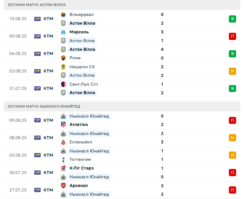 У першому турі нового сезону Прем’єр-ліги Астон Вілла прийматиме Ньюкасл на своєму полі на Вілла Парк. Команди вже другий раз за три роки стартують сезон саме очним поєдинком, і історія показує, що голи тут майже гарантовані. Обидві команди минулого сезону завершили на високих місцях та налаштовані на боротьбу за єврокубки.