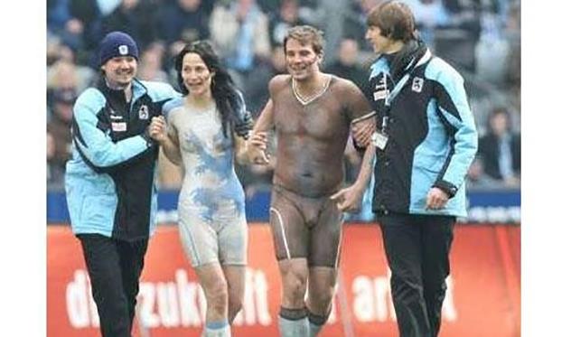 В это трудно поверить, но есть стрикеры, которые зарабатывают на своем хобби. Яркий пример – британец Марк Робертс. В его активе уже более 300 появлений на спортивных аренах, и во всех случаях его тело, это ходячий рекламный щит. В основном Робертс рекламирует букмекерские конторы. И что самое интересно, ему до сих пор не запрещено посещать матчи, так что во Франции можем увидеть Робертса.