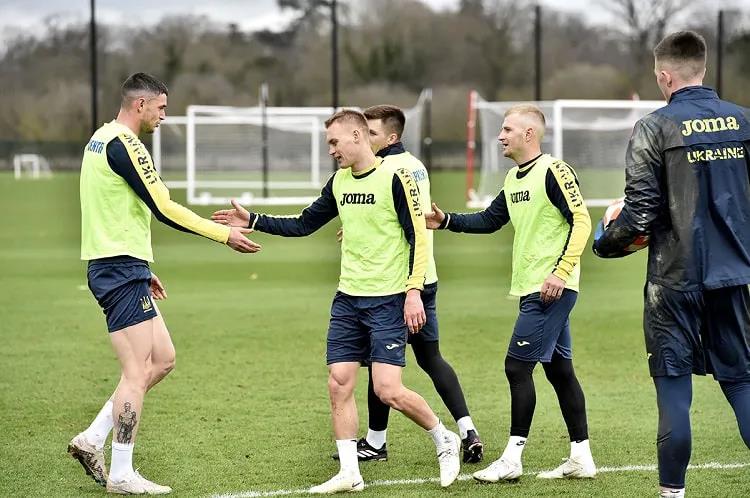 Збірники тренувалися у різних групах — це зумовлено тим, що деякі гравці брали участь у матчах своїх клубів на минулих вихідних. Серед них були Олександр Зінченко, Руслан Маліновський та представники Шахтаря – Микола Матвієнко, Тарас Степаненко, Артем Бондаренко та Георгій Судаков. Усі вони грали у тенісбол.
