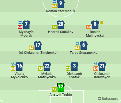 Інший портал, SofaScore, визначив найкращим гравцем збірної України Анатолія Трубіна — 7,7.