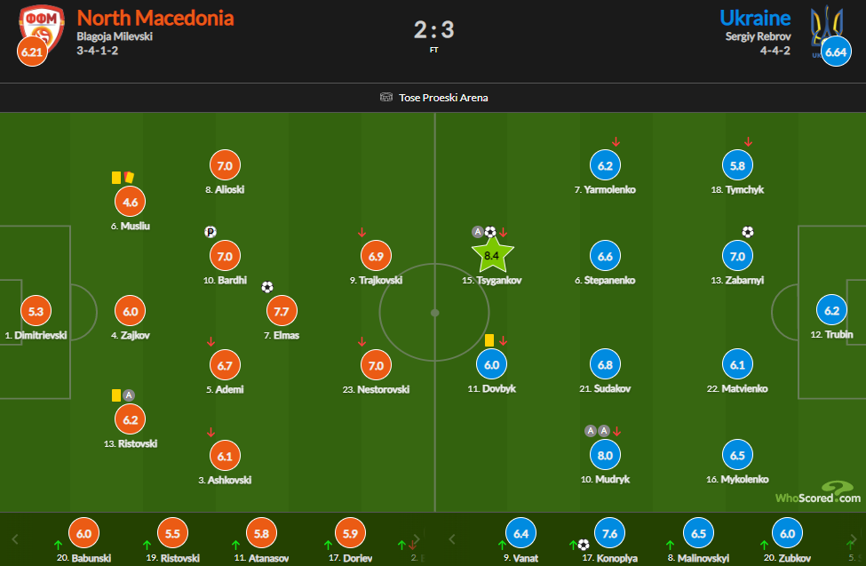 Збірна України в рамках поєдинку третього туру відбіркового етапу до фінальної частини чемпіонату Європи-2024 грала на виїзді проти Північної Македонії та здобула героїчну перемогу.
