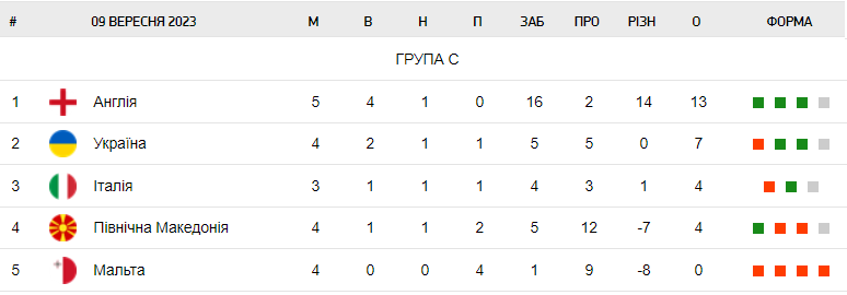 Завдяки цьому відрив команди Сергія Реброва від "скуадри адзурри" у три очки зберігся, але в італійців ще є один матч у запасі (у тому числі одна зустріч із Англією), тому багато що вирішуватиметься саме в очних поєдинках українців та італійців.