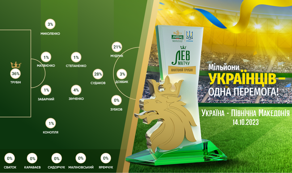 За підсумками голосування за підтримки спонсора збірної України ТМ Львівське приз "Лев матчу" у грі проти Північної Македонії отримав воротар нашої національної команди — Анатолій Трубін, у якого просто не було можливості зіграти на будь-якій іншій позиції, якщо брати до уваги славнозвісного Олів’є Жиру. Але прізвисько "стіна" все ж таки потрібно було виправдовувати, адже на лаву запасних присів сам Георгій Бущан, що вже чимало свідчило про рівень підтримки від Сергія Реброва.