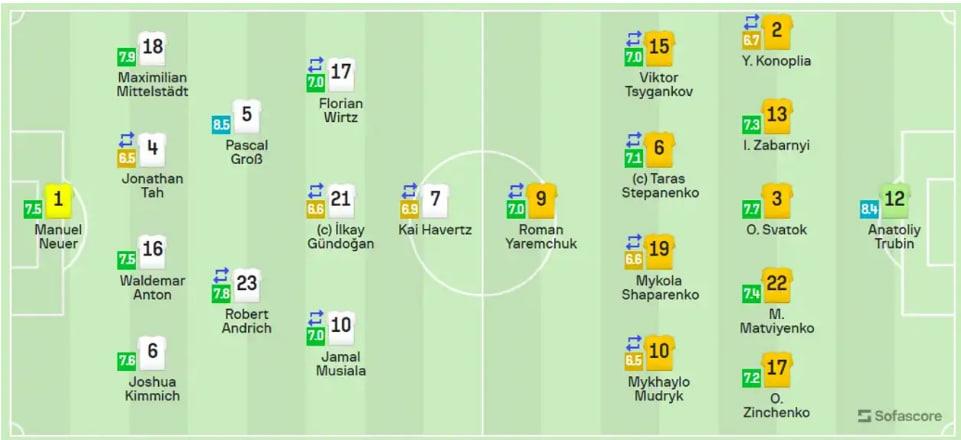 Портал Sofascore оцінив виступи гравців української команди. Зокрема, найкращим гравцем став Анатолій Трубін — він отримав 8,4 бала.