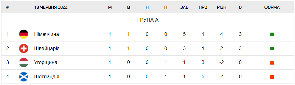 У матчі-відкриття Євро-2024 національна збірна Німеччини, яка є господаркою турніру, зустрілася в очному протистоянні з Шотландією та здобула розгромну перемогу з рахунком 5:1.