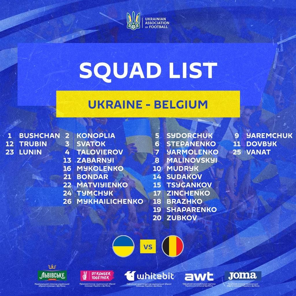 Збірна України оголосила заявку на матч третього туру групи E у Штутгарті з Бельгією — повідомляє офіційний сайт УАФ.