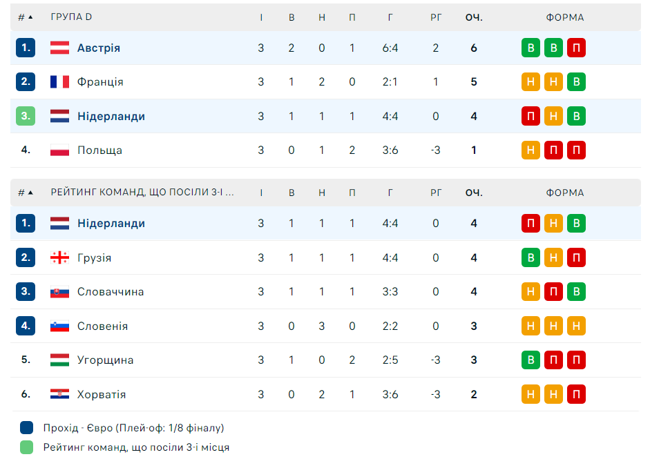 Збірна Нідерландів, у свою чергу, спочатку потрапила до так званої "групи смерті", де окрім неї учасниками були збірні Австрії, Франції та Польщі. І якби це був старий формат проведення чемпіонату Європи, то "помаранчеві" залишили б турнір після поразки від австрійців у заключному турі. Однак підопічні Рональда Кумана опинилися в 1/8 фіналу Євро-2024 не просто за рахунок того, що вони стали однією з найкращих команд, котрі зайняли треті місця у своїх квартетах. Нідерландці в цьому плані загалом стали найкращою третьою командою.
