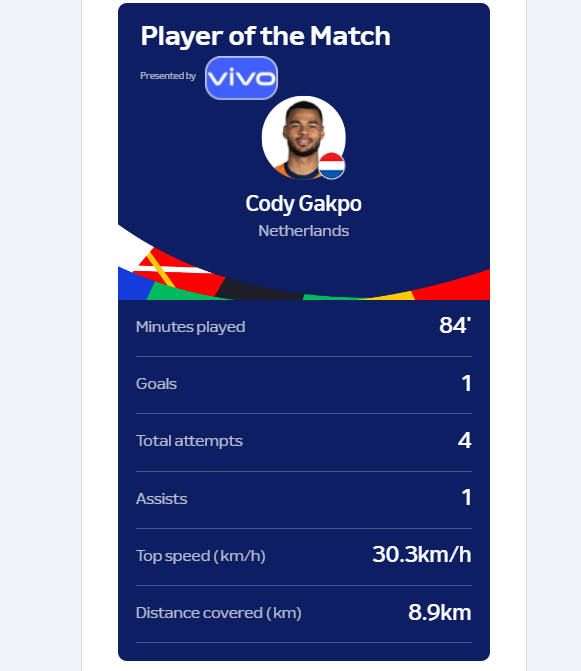 Як повідомляє офіційний сайт УЄФА, найкращим гравцем цього протистояння було визнано нідерландського нападника Коді Гакпо, який записав на свій рахунок гол та результативну передачу.