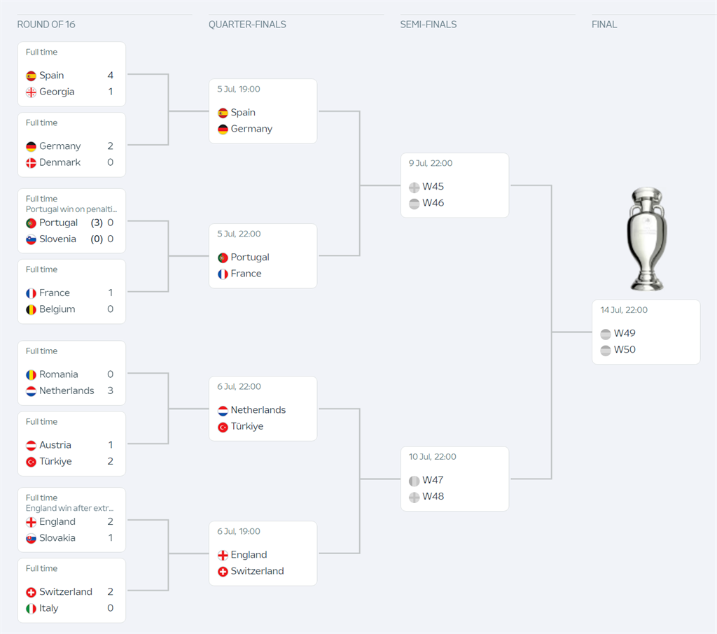 У вівторок, 2 липня, у рамках четвертого ігрового дня 1/8 фіналу плей-оф чемпіонату Європи-2024 у Німеччині відбулися два матчі.