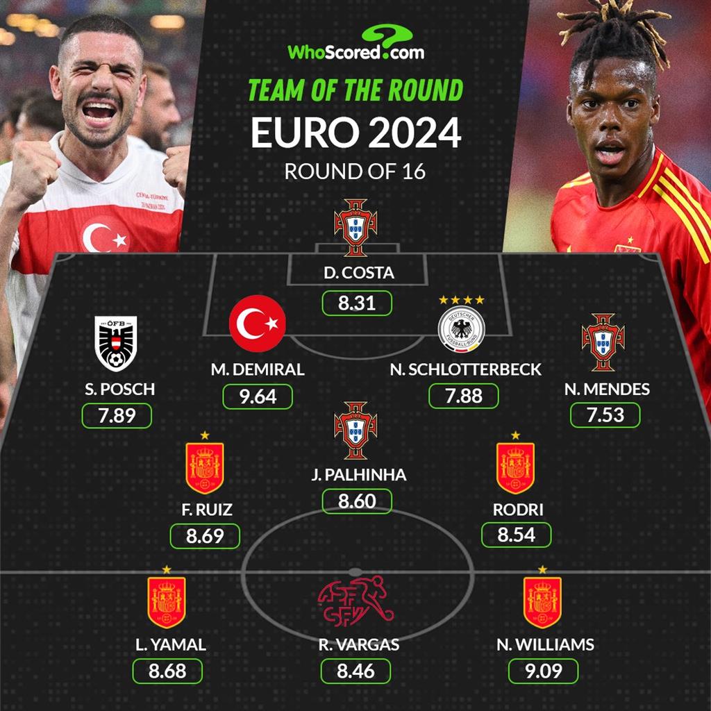 Авторитетний статистичний портал WhoScored представив символічну збірну за підсумками матчів 1/8 фіналу Євро-2024.