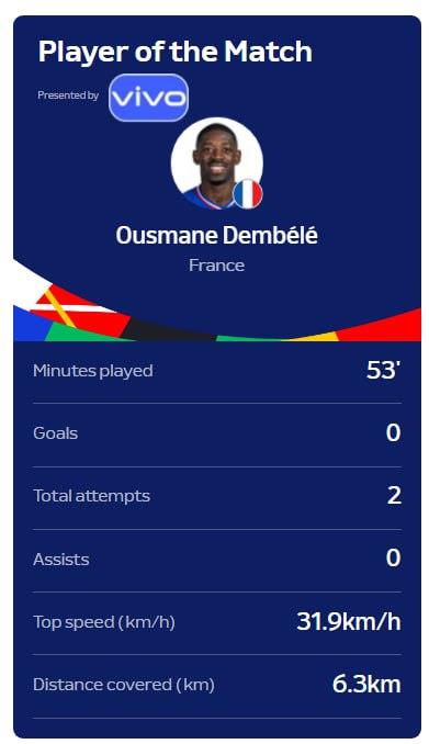 Статистика Усмана Дембеле в матчі з Португалією:
