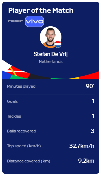 Як повідомляє офіційний сайт УЄФА, найкращим гравцем цього протистояння було визнано нідерландського захисника Стефана де Врея, який допоміг своїй команді зберегти переможний рахунок, незважаючи на чисельні небезпечні моменти з боку турків, а також зрівняти рахунок своїм голом на 71-ій хвилині.