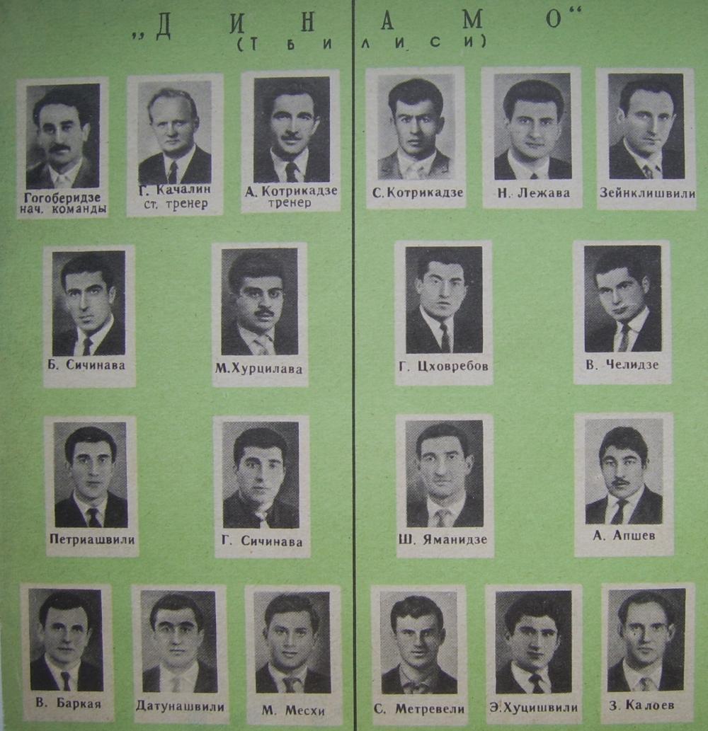Состав тбилиссцев в том золотом году был воистину звёздным – 2 чемпиона Европы-1960 и просто таки разрыватели флангов Михаил Месхи и Слава Метревели (второй из них, к слову, за год до чемпионского сезона перебрался в грузинскую команду из стана московского Торпедо – главного конкурента грузинов в борьбе за титул 64-ого года), прекрасные наконечники атак Илья Датунашвили и Владимир Баркая (они оба, в отличие от Месхи и Метревели, живы и по сей день, и в этом году отметят свои 83-е дни рождения.