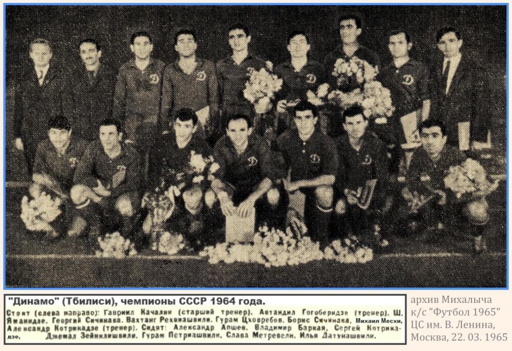 В середине 60-х никто не мог ожидать, что в гегемонию московских клубов, один раз прерванную киевским Динамо, ворвутся какие-то южные парни. В сезоне 1963 года тбилисские динамовцы заняли достаточно престижное, как для себя, пятое место, но никому и в голову не могло прийти, что в следующем, 1964 году, команда выстрелит так, что возьмёт золотые медали.