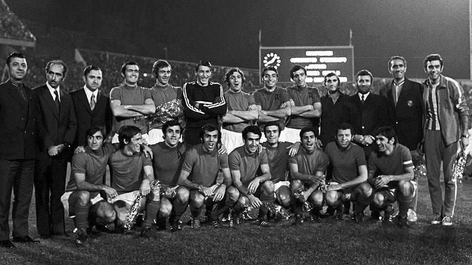 В чемпионате же Арарат оформил золото в последнем матче сезона, обыграв со счётом 3:2 ленинградский Зенит на родном Раздане. На 27-й минуте капитан команды Оганес Заназанян издали с левой поразил девятку ворот "сине-бело-голубых". Сразу после перерыва счёт удвоил Эдуард Маркаров – личность уникальная хотя бы тем, что является легендой и азербайджанского Нефтчи, и армянского Арарата. Ну, это примерно как быть легендой московского Спартака и киевского Динамо одновременно, если привести уж очень грубое сравнение… Неудивительно, что в Азербайджане Эдуарда Артёмовича считают предателем.