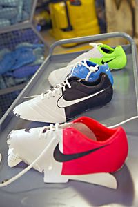Производство новых бутс нам показали на примере двух моделей новой коллекции, которая сделана специально к чемпионату Европы в Украине и Польше: сделали «Классику», черно-белые Tiempo, для Андрея Шевченко и «скоростные», красно-белые Mercurial (или точнее, розово-белые), для Андрея Аршавина. Всего в коллекции Clash четыре вида бутс. Еще есть бело-голубые CTR360 и бело-зеленые T90. И отличаются они не только по цвету – бутсы созданы на все привередливые вкусы профессиональных футболистов.