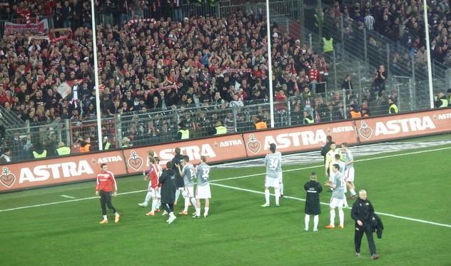 Все это время Миллернтор практически не пустел, и вот только после того, как футболисты закончили обход трибун, который длился минут десять, пришло время покидать стадион.