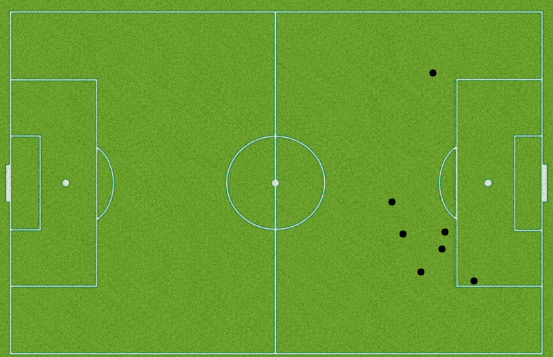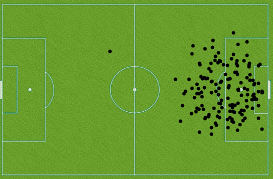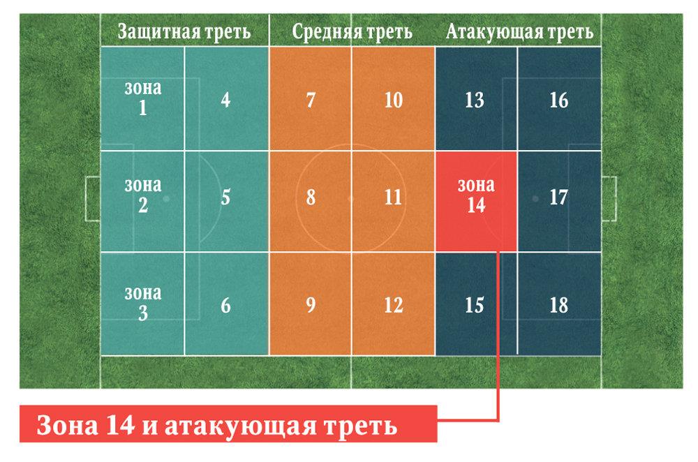 Больший показатель xG будет иметь так команда, моменты которой потенциально имели больше шансов закончиться голом. Первое и самое очевидное: удары должны наносится с опасных позиций. В тактическом футбольном мире эти позиции имеют название danger zone или же зоны 14 и 17: