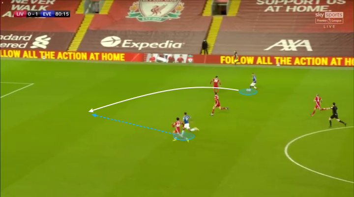 … Второй гол в том матче пришел с пенальти, который был организован в следствии успешной контратаки, выигранного забега и конкретно открывания за те же спины защитников Домиником Калверт-Льюином.