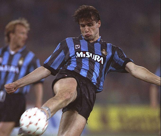 А теперь поговорим о другом представителе Серии А. Интер начал кампанию-1990/91 с тремя победителями чемпионата мира в своих рядах — Юрген Клинсманн добавился к немецкому контингенту в лице Бреме и Маттеуса. Но, несмотря на все усилия, "нерадзурри" вылетели из Кубка Италии, а их борьба за титул в конце сезона прекратилась после двух поражений в оставшихся пяти матчах.