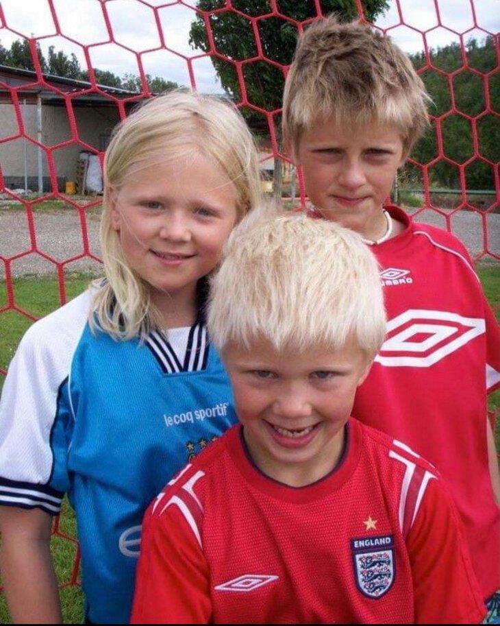 А отут Ерлінг, який провів у Британії більшу частину дитинства, на мить "став англійцем" і одягнув форму головної команди країни, але й слід Сіті теж присутній — тільки-от на його сестрі.