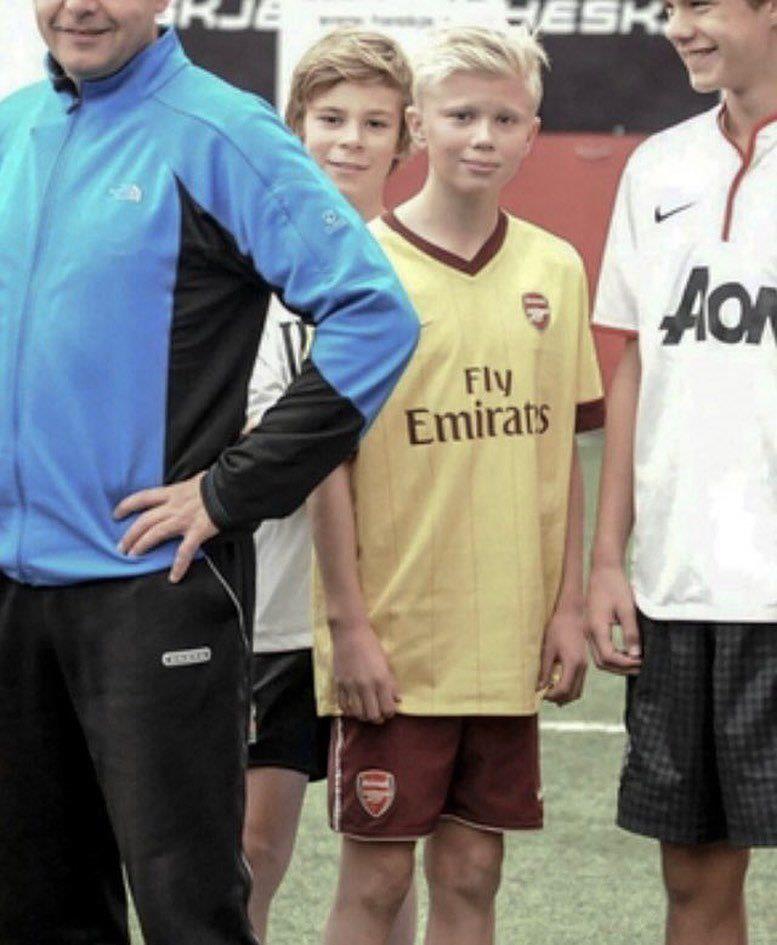 Потім інтернетом почали ширитися й інші фотографії — зокрема, де Ерлінг присутній на Етіхаді у ролі вболівальника. Але найгострішого перцю до дискусій додала фотографія, на якій він красується у футболці лондонського Арсеналу. До слова, жодних пояснень так і не було, але давайте не судити милу дитинку.