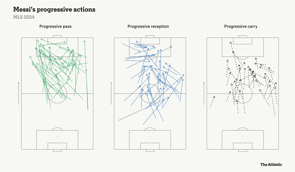 Лише п’ять гравців MLS — у тому числі Федеріко Бернардескі з ФК Торонто, Луїс Муріель з Орландо Сіті та колишній одноклубник Мессі по Барселоні Рікі Пуч з ЛА Гелаксі — наразі показують у середньому більше, ніж 19,2 прогресивних дій Мессі за 90 хвилин гри.