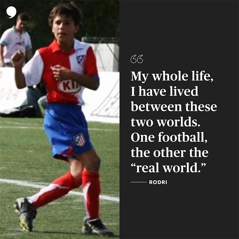 Агуеро і Отаменді насправді постійно з мене жартували — не тільки через одяг, а й тому, що я сідав в автобус після кожного матчу і дзвонив по FaceTime моїй дружині. Оскільки я футболіст, а вона лікар, нам довелося звикати до того, що ми знаходимось на відстані багато років. Що ви робите, коли ви на відстані? Ви спілкуєтеся по FaceTime. Я дзвонив їй після кожної гри, незалежно від того, виграли ми або програли. Коли ми вигравали, це не було проблемою, бо хлопці шуміли та святкували, і вони цього не помічали. Але коли ми програвали, я ще був самим собою. Коли я розмовляю зі своєю дружиною, мій мозок ніби повертається до університету. Я знову ставав Родріго. В автобусі було тихо, коли ми програвали, всі були з опущеними головами, усі були пригнічені, а я голосно казав: "Так, ми сьогодні були трохи лайновими, якщо чесно. Так, так, ми зіграли внічию. Так, я злий"... Ну, а як пройшов твій день?"