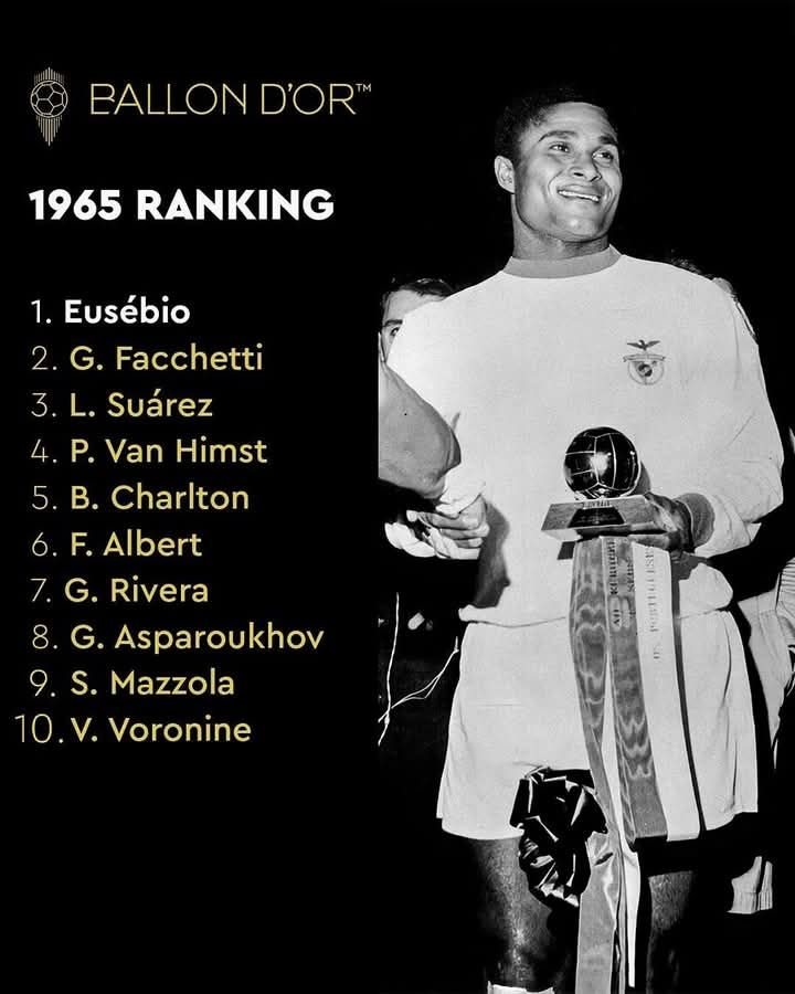 Іспанія, сусіди Португалії, домінувала в голосуванні за Золотий м’яч у перше десятиліття його існування, але Ейсебіо порушив цю тенденцію. У 1962 році він став другим після Йозефа Масопуста з Чехословаччини, а вже через три роки – переміг.