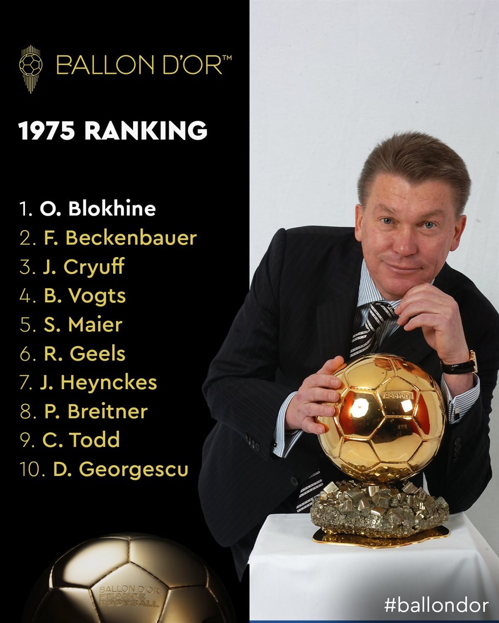 Народжений у сучасній Україні, Олег Блохін став другим після Лева Яшина із трьох володарів Золотого м’яча з Радянського Союзу, а також першим українцем із трьох — після нього були Ігор Бєланов (1986) та Андрій Шевченко (2004).