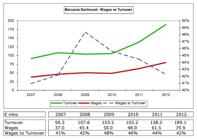 Как видим, наибольшей статьей дохода является поступления от коммерческой деятельности. Вообще в показателях сезона 2010/11 годов дортмундцы имели наибольшую часть суммарного дохода именно от коммерческой деятельности среди всех команд рейтинга Deloitte - 57%. И хотя ее удельный вес понизился до 51% в отчетном году, что стало причиной больших поступлений от продажи телевизионных прав в связи с участием в Лиге чемпионов, это очень хороший показатель для футбольного клуба.