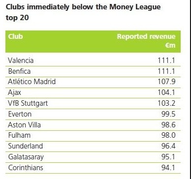 - География участников рейтинга не потерпела особых изменений. За исключением Ньюкасла, эти же клубы фигурировали в первой двадцатке прошлогоднего доклада. А заменили Сороки испанскую Валенсию. Таким образом, представительство по странам выглядит следующим образом: Англия – 7 клубов, Италия – 5 клубов, Германия – 4 клуба, Испания и Франция – по 2 клуба.
