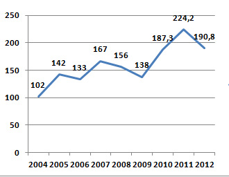 Рекордного показателя 2011-го года не удалось достичь из-за расходов на ремонт крыши стадиона в размере 6,6 млн евро. Также не было поступлений от крупных трансферов (Нойер в 2011) и достаточно раннего вылета из кубка Германии. 86 млн. евро ушли на выплату зарплат работникам клуба и футболистам.